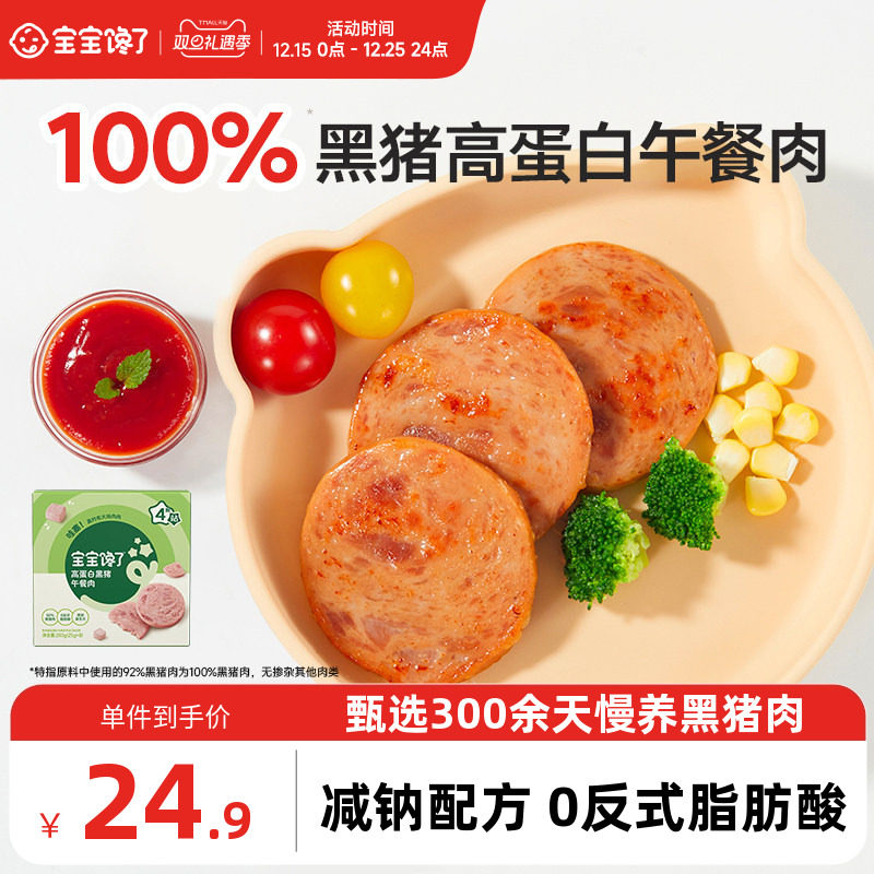 婴童食品 宝宝馋了黑猪午餐肉儿童零食无添加香精送宝宝一岁以上婴儿辅食谱