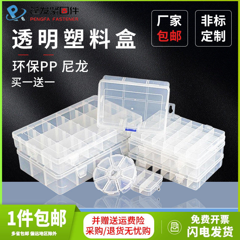 五金/工具 透明PP塑料盒9.9包邮可拆分类整理零件盒包装元器件盒首饰收批发