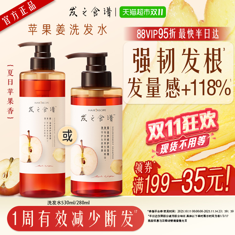 美发护发/假发 【下拉享淘金币优惠】发之食谱洗发水露无花果苹果姜控油蓬松去屑