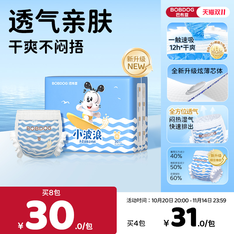 婴童尿裤 BOBDOG巴布豆小波浪拉拉裤干爽透气超柔亲肤婴儿尿不湿不闷捂1包