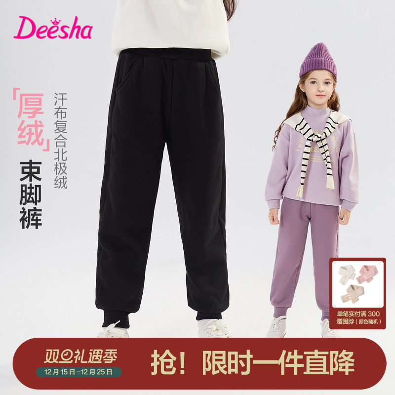 童装/婴儿装/亲子装 笛莎官方旗舰童装女童加绒运动裤冬季新款女孩儿童时尚保暖休闲裤