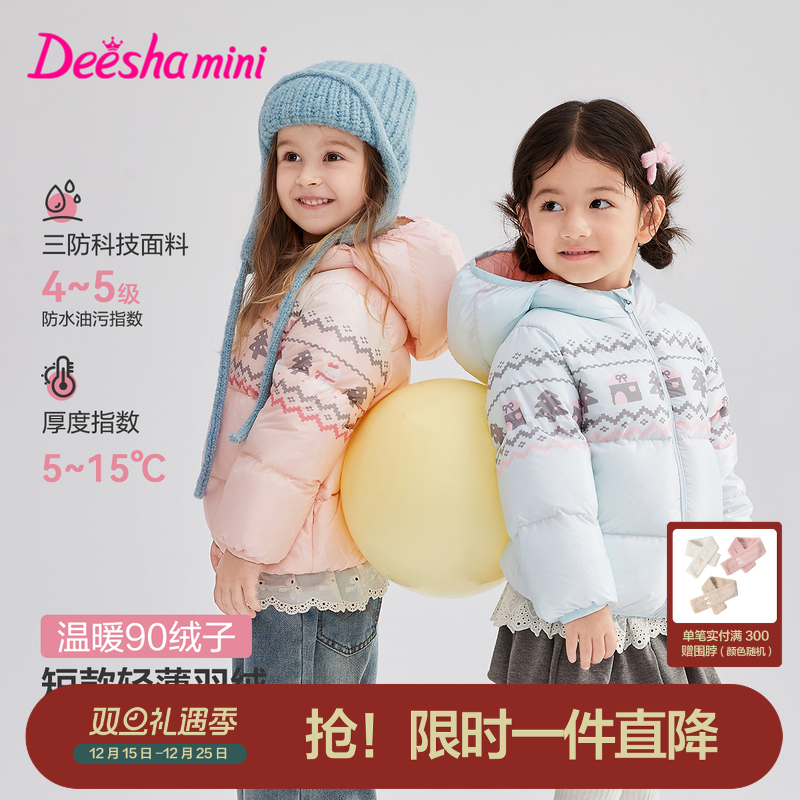 童装/婴儿装/亲子装 笛莎官方旗舰童装女童轻薄羽绒服秋冬季新款宝宝儿童三防连帽外套