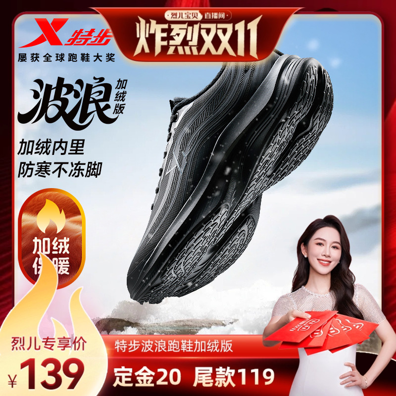 运动鞋new 【先加购!7号炸烈0元付定】特步波浪棉鞋跑步鞋男加绒保暖运动鞋