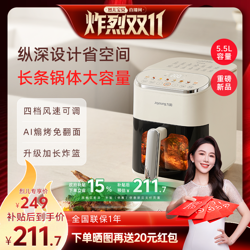 厨房电器 【 先加购!7号炸烈0元付定】九阳空气炸锅家用大容量可视多功能