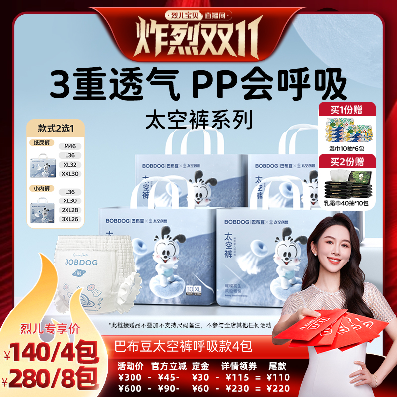 婴童尿裤 【 先加购!7号炸烈0元付定】巴布豆太空裤呼吸款拉拉裤干爽透气
