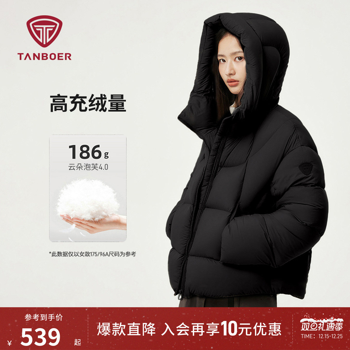女装/女士精品 坦博尔冬季羽绒服女装短款高倍充绒加厚云朵泡芙连帽保暖时尚外套