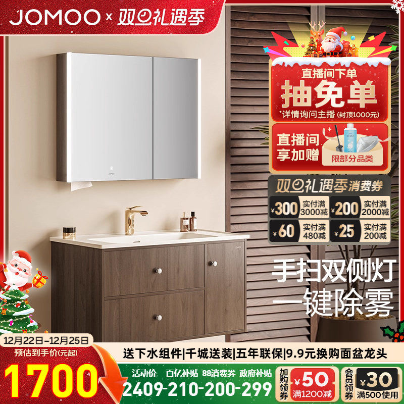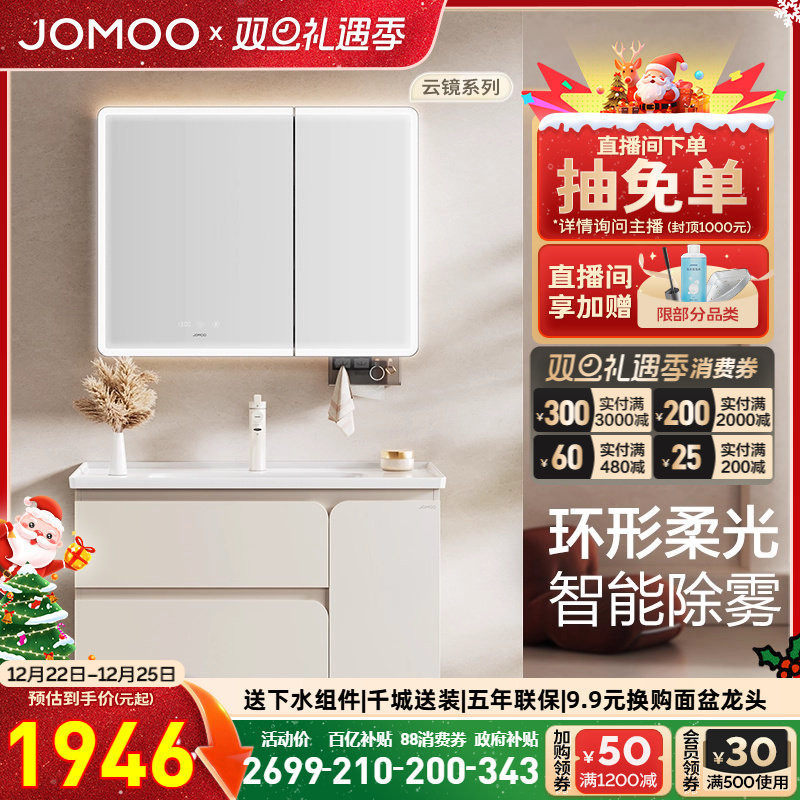 家装主材 【百亿补贴】九牧环形柔光智能除雾卫生间浴室柜组合陶瓷盆A2767