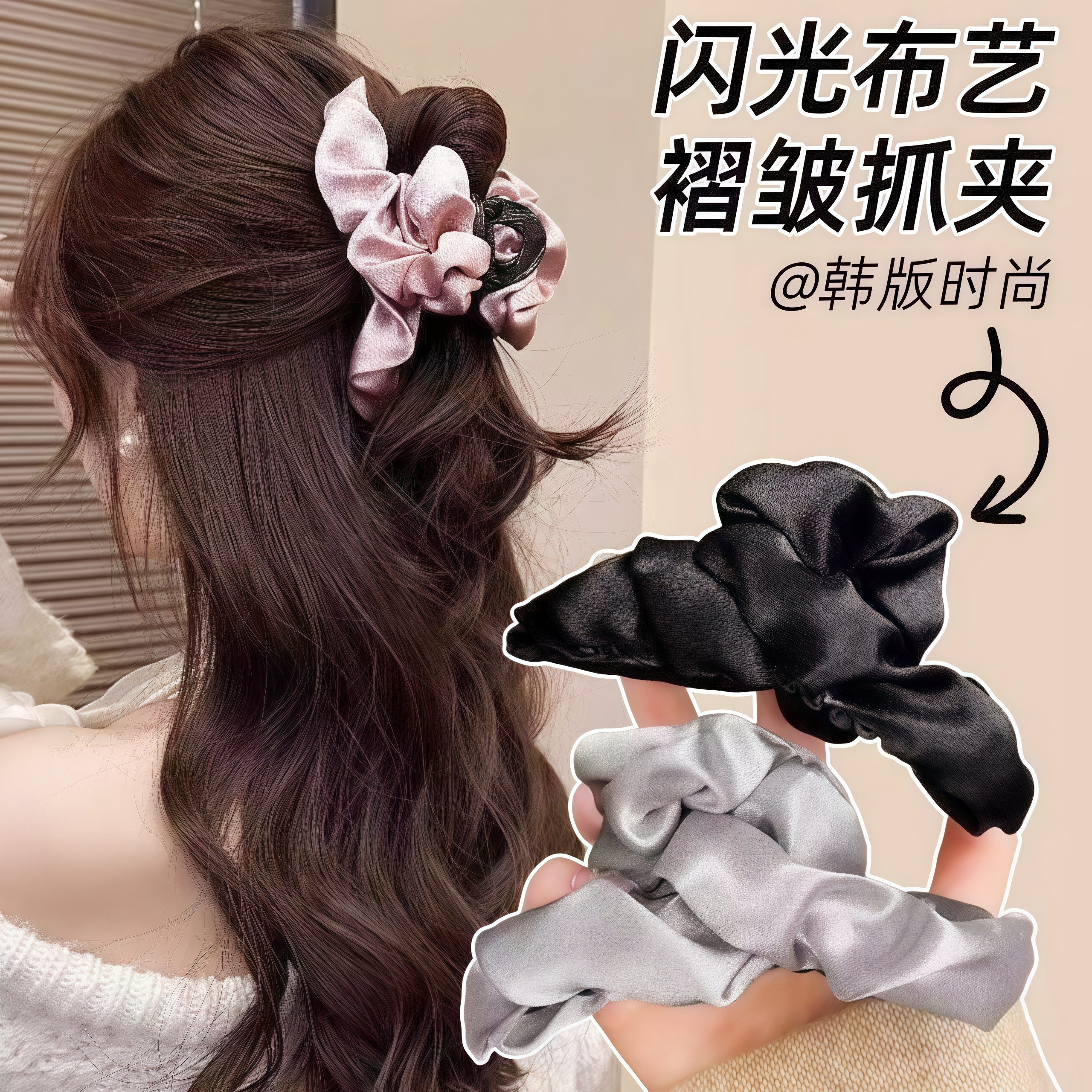 饰品/流行首饰/时尚饰品新 云朵褶皱闪光抓夹法式布艺鲨鱼夹高级感发夹女2025新款后脑勺夹子