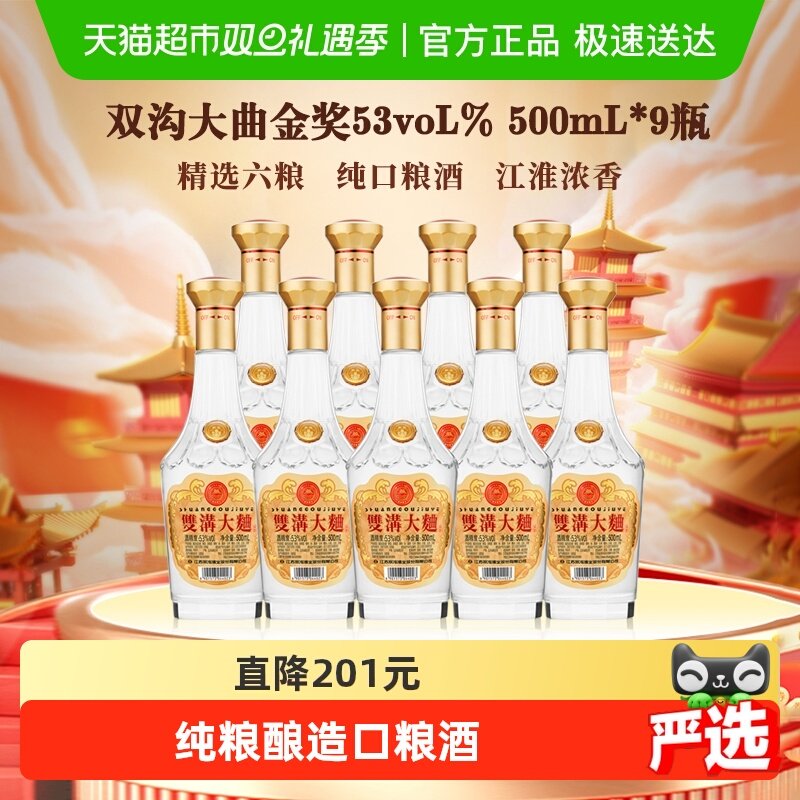 酒类 双沟大曲金奖53度500mlx9整箱装浓香型白酒复古光瓶装纯粮食酒