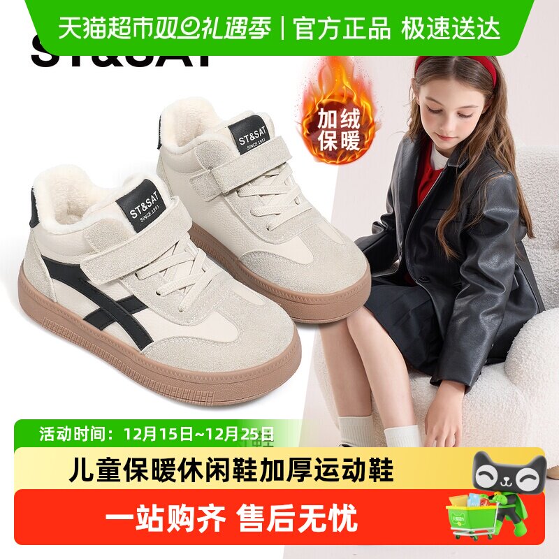 童鞋/婴儿鞋/亲子鞋 星期六童鞋儿童加绒板鞋2025秋冬新款男女童保暖休闲鞋加厚运动鞋