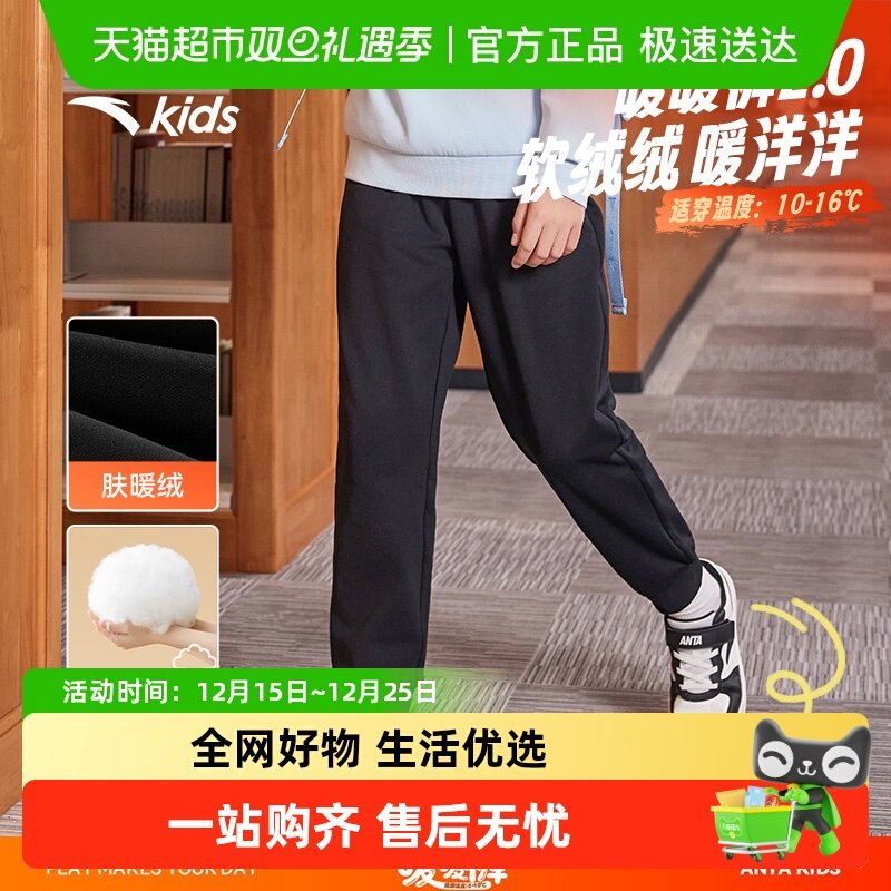 童装/婴儿装/亲子装 安踏儿童男女童针织运动长裤2025冬季新款舒适保暖中大童加绒裤子