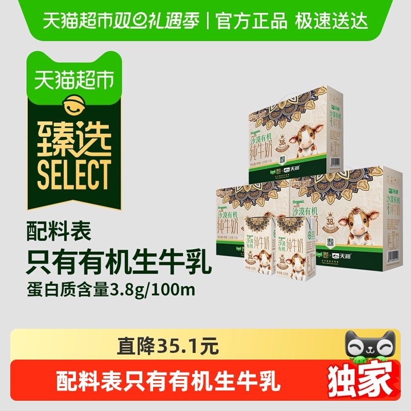 咖啡/麦片/冲饮 【臻选】天润沙漠有机纯牛奶3.8蛋白125g*48盒儿童学生早餐奶