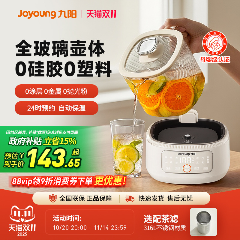 厨房电器 九阳全玻璃恒温养生壶家用多功能办公室煮茶器烧水壶纯玻璃WY103