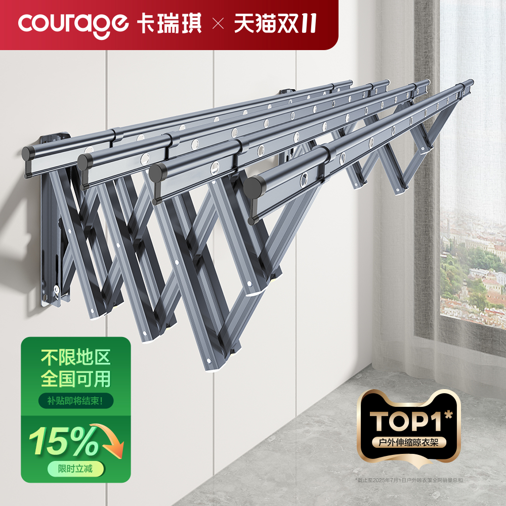 收纳整理 【政府补贴】阳台伸缩晾衣杆家用晾衣架室外折叠户外推拉窗户晒衣