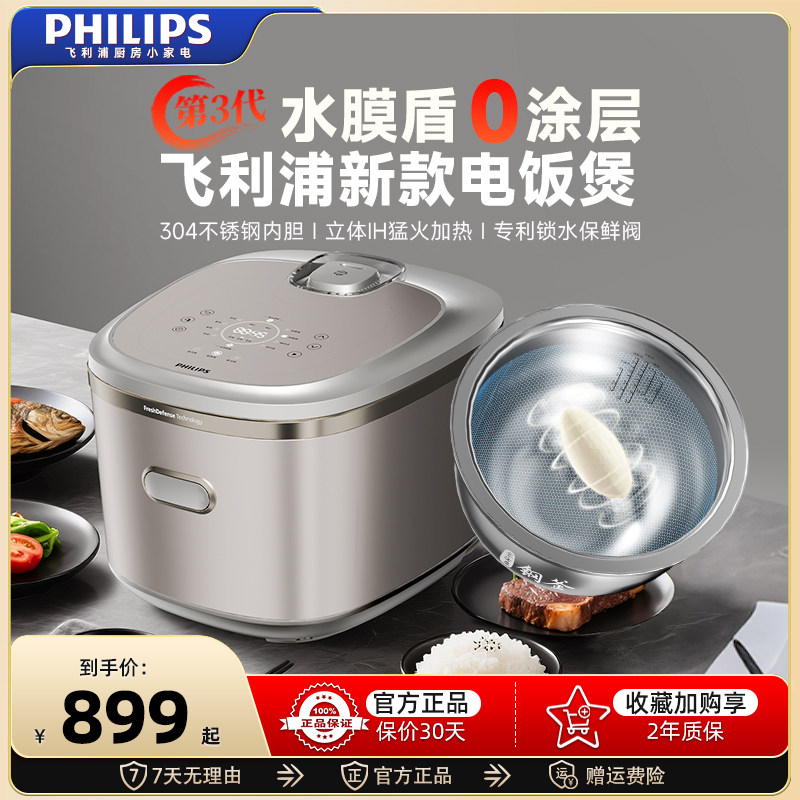 厨房电器 飞利浦电饭煲家用无涂层0涂层电饭锅3到4到5人不锈钢内胆官方旗舰