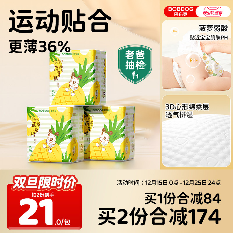 婴童尿裤 【老爸抽检】巴布豆淘气菠萝拉拉裤超薄透气干爽婴儿宝宝纸尿裤