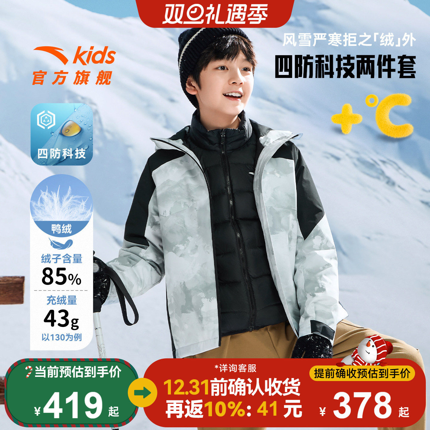 童装/婴儿装/亲子装 安踏儿童羽绒两件套上衣2025冬上新舒适保暖中大童四防连帽羽绒服