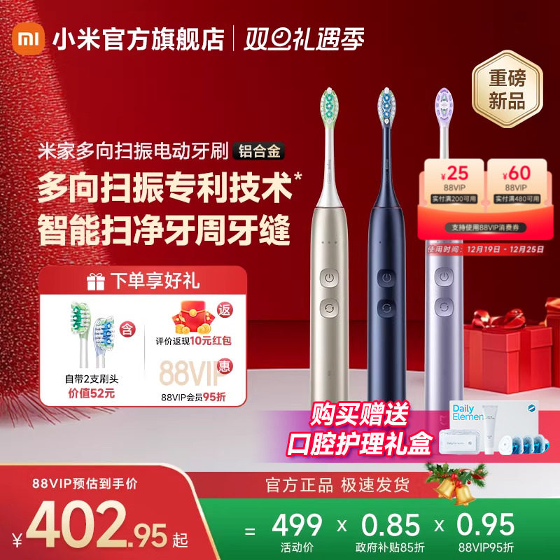 美容美体仪器 【政府补贴】小米官旗米家多向扫振电动牙刷成人护龈新年圣诞礼物