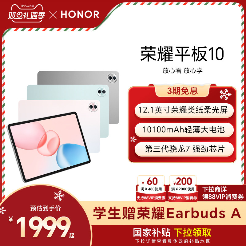 平板电脑/MID 【政府补贴15%】HONOR/荣耀平板10 新品平板电脑 12.1英寸类纸护眼屏 AI学习学生考研正品官方旗舰店Pad10