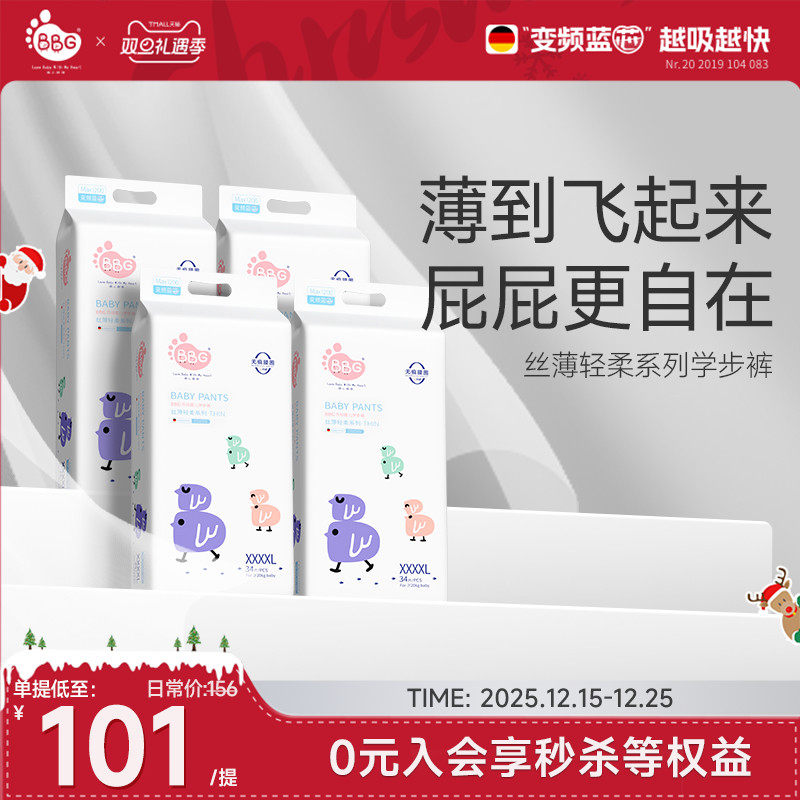 婴童尿裤 4提/BBG丝薄轻柔拉拉学步裤L/XL/XXL婴儿尿不湿超薄透气