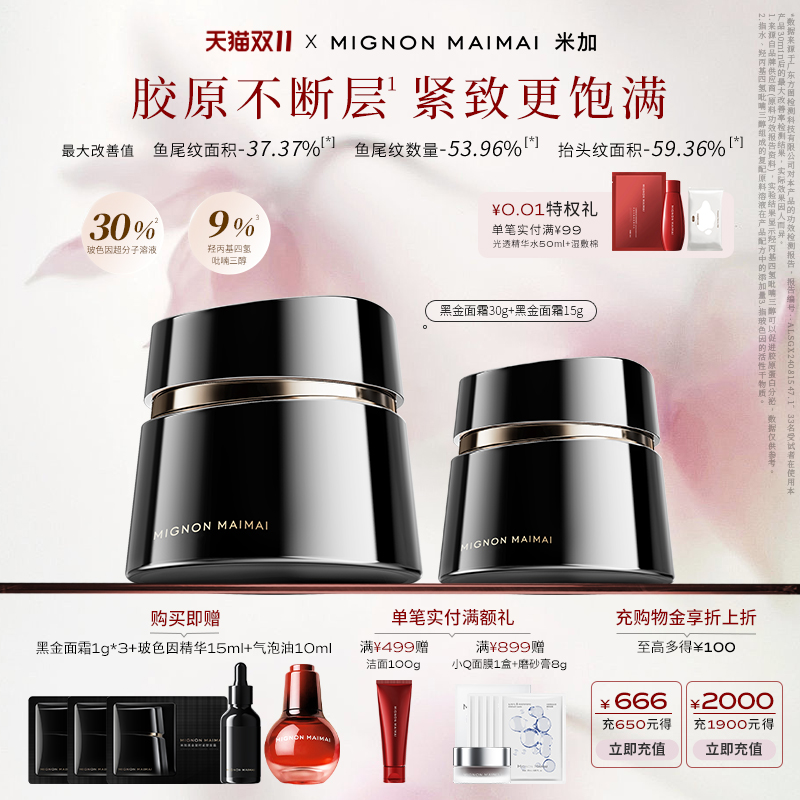 美容护肤/美体/精油 【直播专享】米加黑金凝时紧塑30%玻色因溶液面霜4.0保湿紧致淡纹