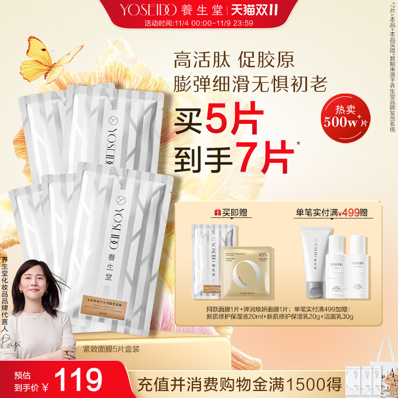 美容护肤/美体/精油 养生堂天然桦树汁水润紧致面膜女面部护理保湿水润面膜5片/盒