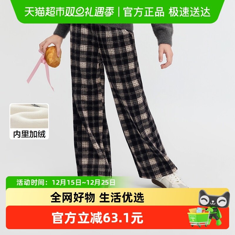 童装/婴儿装/亲子装 巴拉巴拉balaOne童装女童加绒直筒儿童裤子2025冬装新款复古格纹