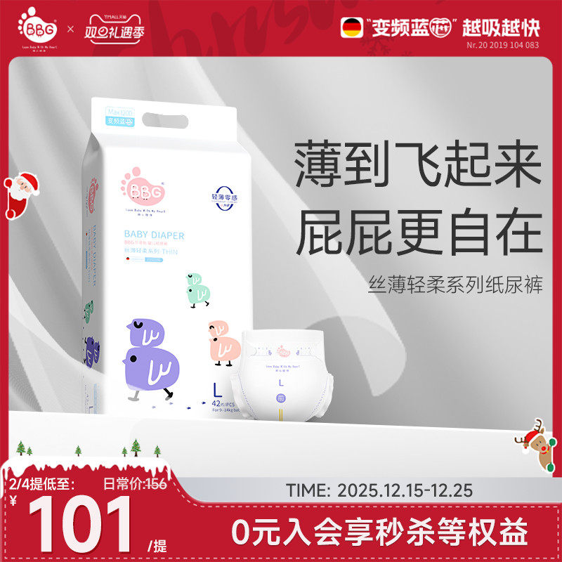 婴童尿裤 BBG丝薄轻柔婴儿纸尿裤S/M/L/2XL新生尿不湿超薄干爽透气母婴专用