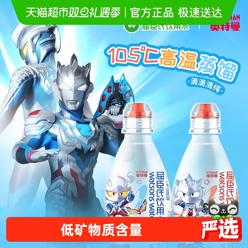咖啡/麦片/冲饮 【下拉享补贴】屈臣氏儿童饮用水奥特曼款200ml*12瓶整箱蒸馏水
