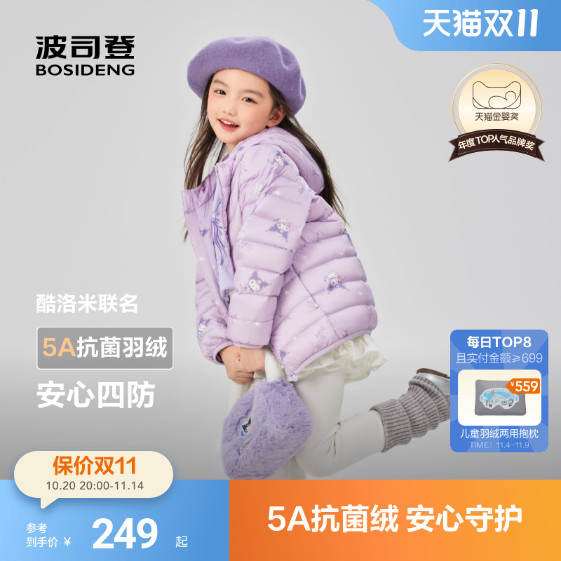 童装/婴儿装/亲子装 【酷洛米联名】2025秋新款波司登儿童轻薄羽绒服三防女童外套连帽
