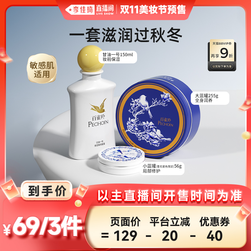 美容护肤/美体/精油 【李佳琦直播间现货美妆节】百雀羚甘油1号大蓝多用膏经典套组
