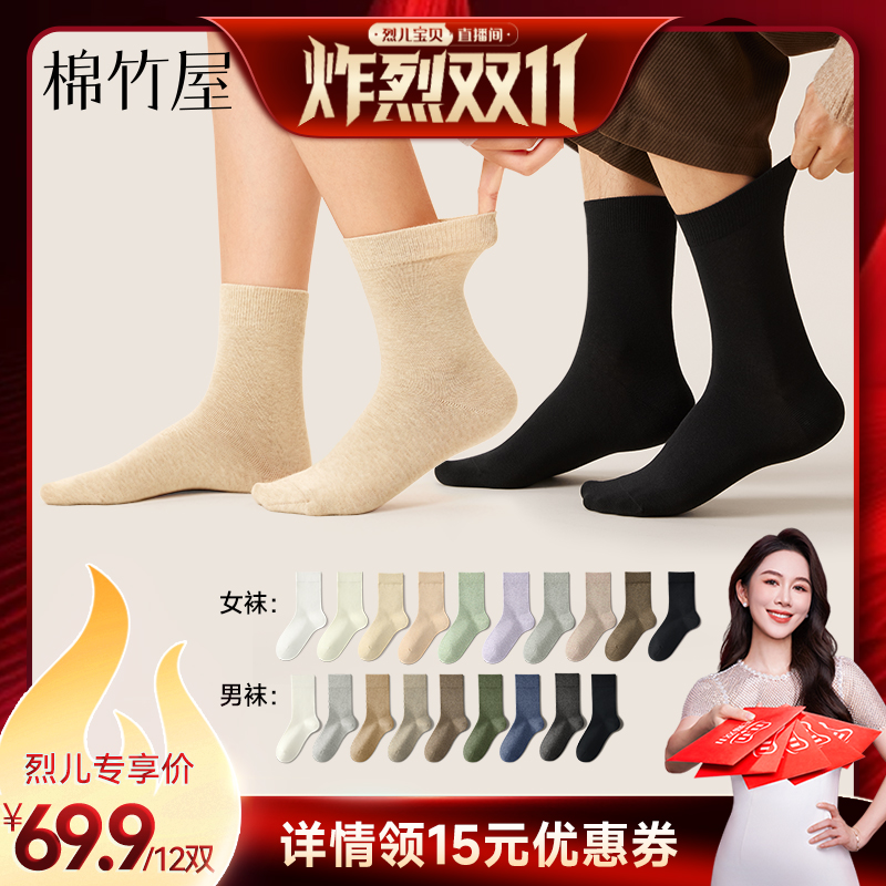 女士内衣/男士内衣/家居服 【 先加购!7号炸烈0元付定】棉竹屋12双装中筒袜男女春秋纯棉