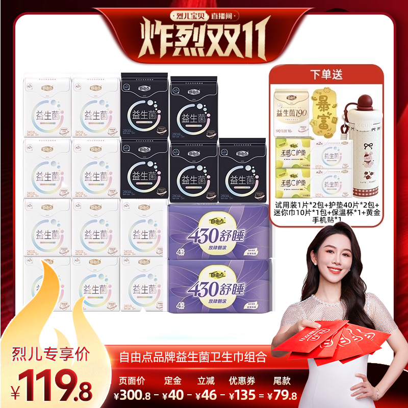洗护清洁剂/卫生巾/纸/香薰 【先加购!7号炸烈0元付定】自由点益生菌超薄卫生巾日夜用组合zb