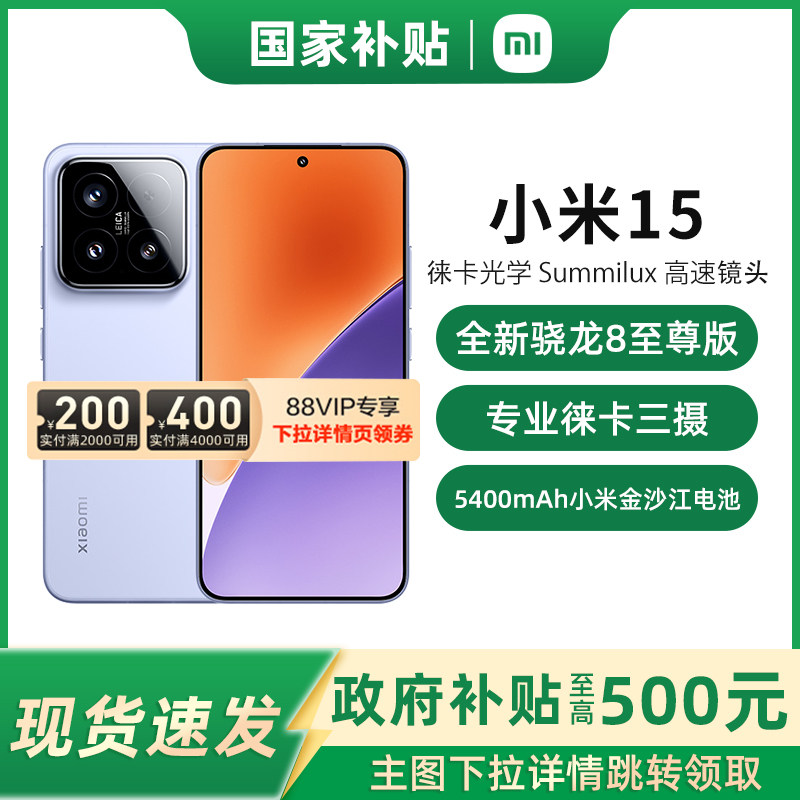 手机 政府补贴15%至高立省500元]现货小米 Xiaomi 15 小米15手机新品新款上市小米徕卡联合研发官网骁龙8至尊版