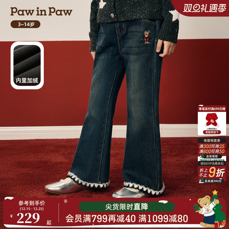 童装/婴儿装/亲子装 PawinPaw卡通小熊童装25年冬季新款女童喇叭裤休闲裤加绒优雅百搭