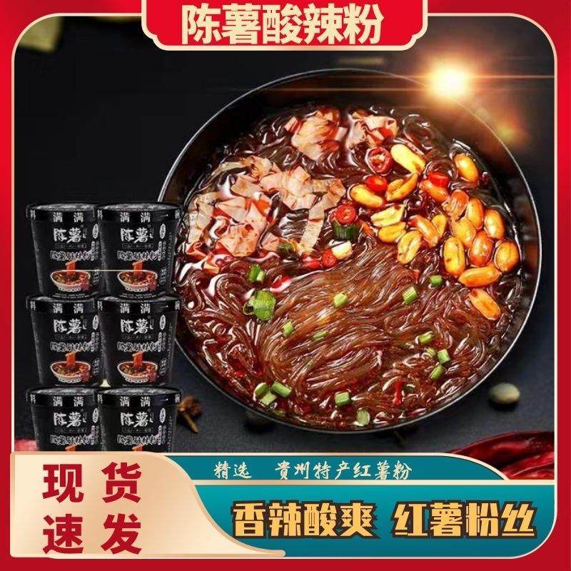 粮油调味/速食/干货/烘焙 陈薯酸辣粉美食甄选纯红薯粉尊享黑金版贵州宽粉丝12桶装旗舰店