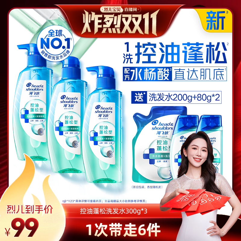 美发护发/假发 【先加购!7号炸烈0元付定】海飞丝头皮护理控油蓬松洗发水300g*3