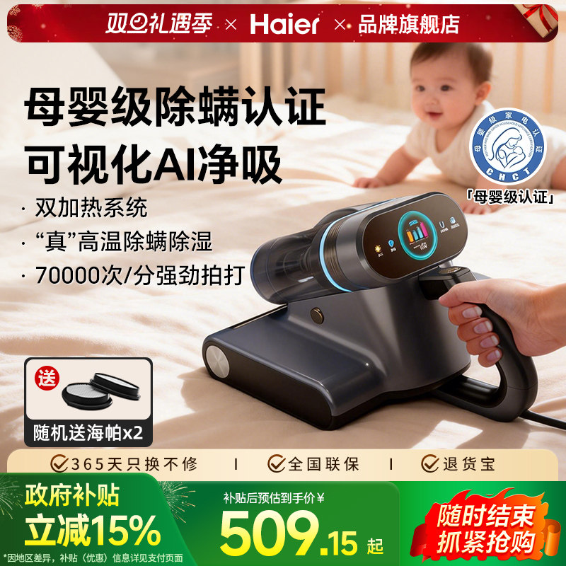 生活电器 海尔世家除螨仪紫外线杀菌机家用床上吸尘器除螨虫神器AI智能感应