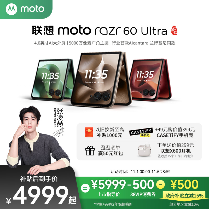 手机 【张凌赫同款 政府补贴至高立减500元】联想moto Razr60Ultra 4.0英寸AI外屏折叠手机5000万广角主摄摩托罗拉