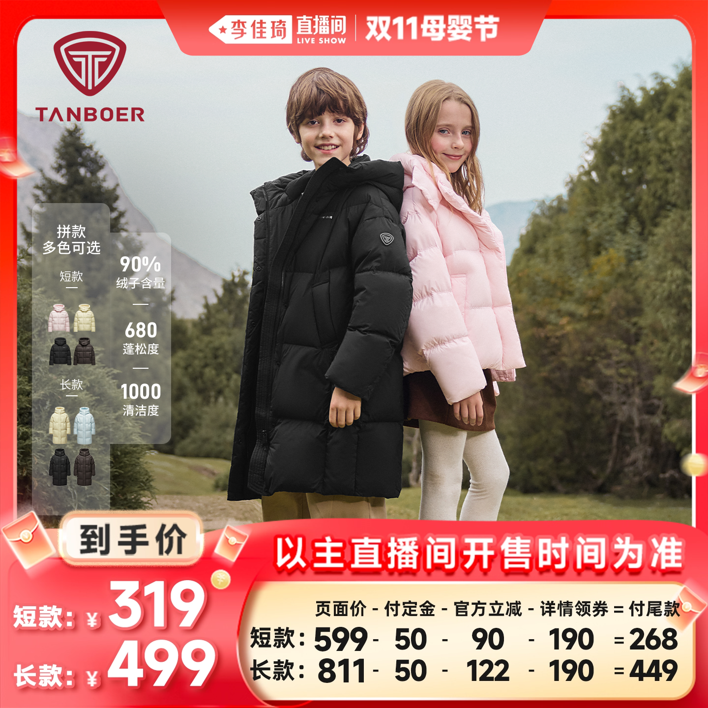 童装/婴儿装/亲子装 坦博尔2025冬季加厚保暖耐脏泡芙男女童高充绒量短款羽绒服外套