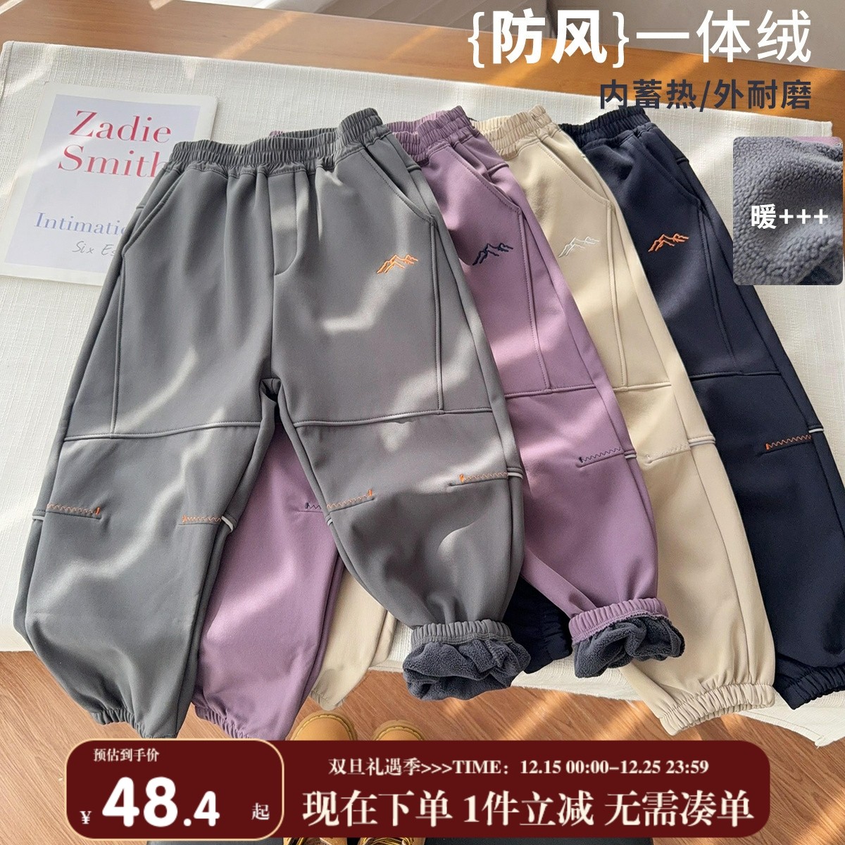 童装/婴儿装/亲子装 【防风加绒冲锋裤】中大童保暖防风一体绒裤子男女童防水保暖裤