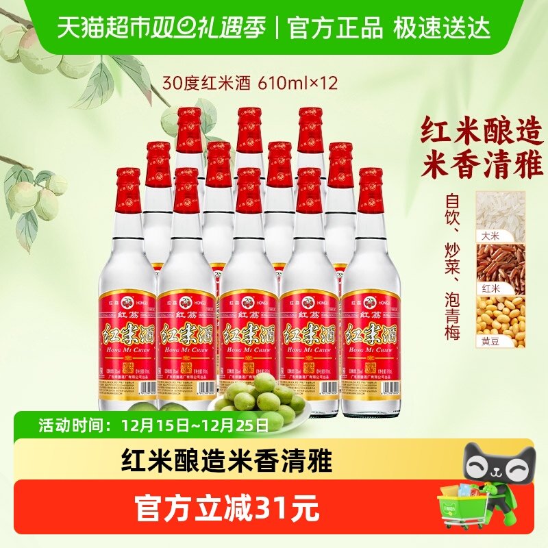 酒类 红荔牌低度白酒30度红米酒610ml*12瓶清雅型自酿浸泡青梅果酒炒菜