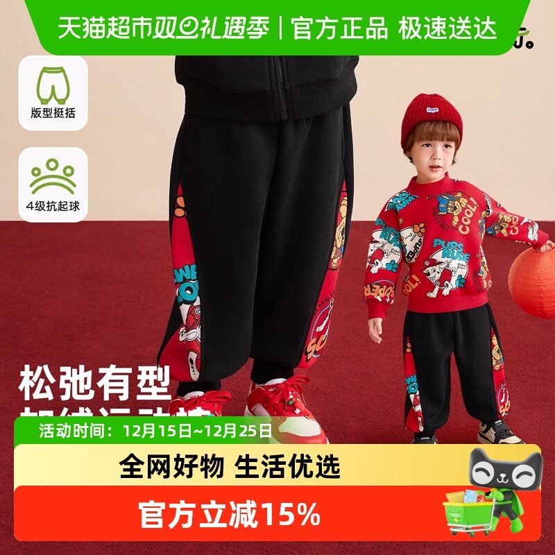 童装/婴儿装/亲子装 汪汪队男童加绒裤子秋冬2025新年儿童宝宝拜年男孩冬装运动休闲裤