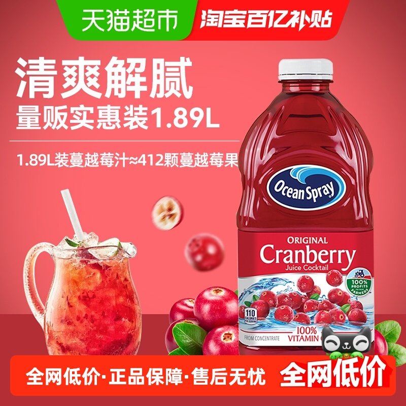 咖啡/麦片/冲饮 OceanSpray优鲜沛美国进口经典蔓越莓大瓶果汁饮料节日聚会健康