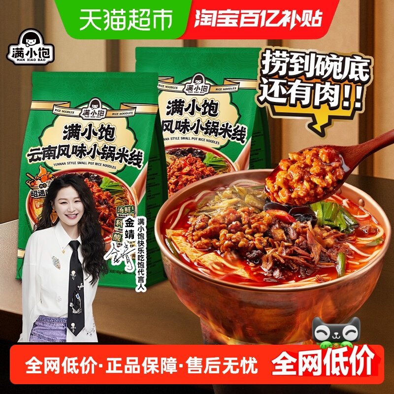 粮油调味/速食/干货/烘焙 【金靖同款】满小饱云南小锅米线267.4*2袋速食螺蛳粉宿舍夜宵米