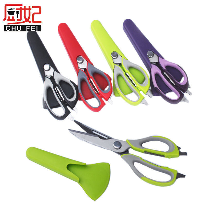 文具电教/文化用品/商务用品 【低价捡漏】创意多功能冰箱剪 厨房强力鸡骨剪带剪刀套 厨房剪刀