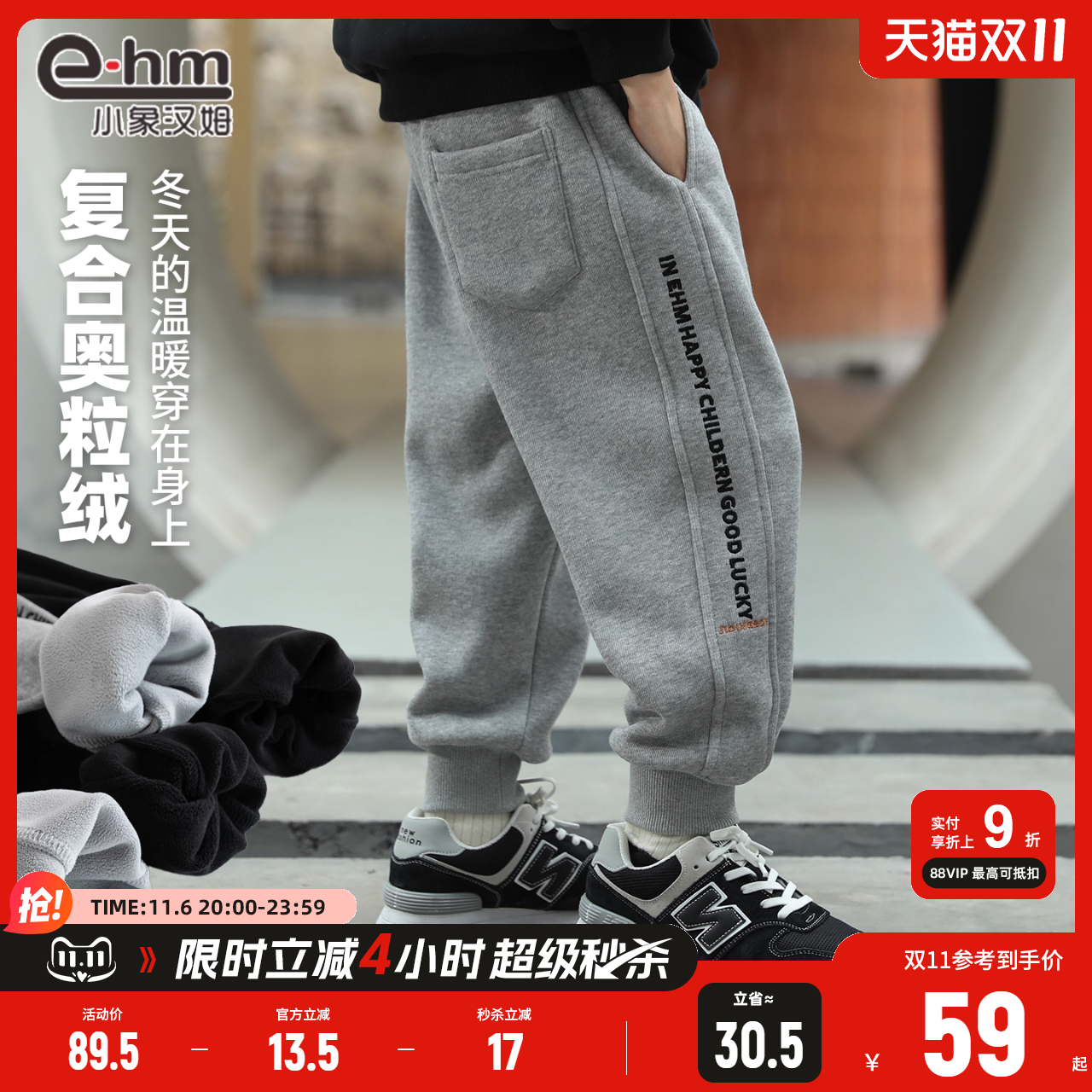 童装/婴儿装/亲子装 小象汉姆童装男童加绒裤子保暖儿童运动裤一体绒冬装2025新款长裤