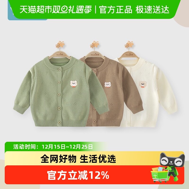 童装/婴儿装/亲子装 优奇婴儿毛衣开衫外套春秋薄款宝宝秋装针织外搭上衣初秋外出纯色