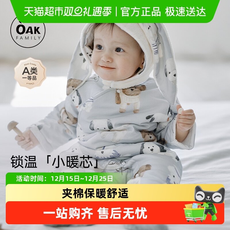 童装/婴儿装/亲子装 OakFamily秋冬新品宝宝夹棉连体衣新生儿纯棉衣服加厚保暖爬服