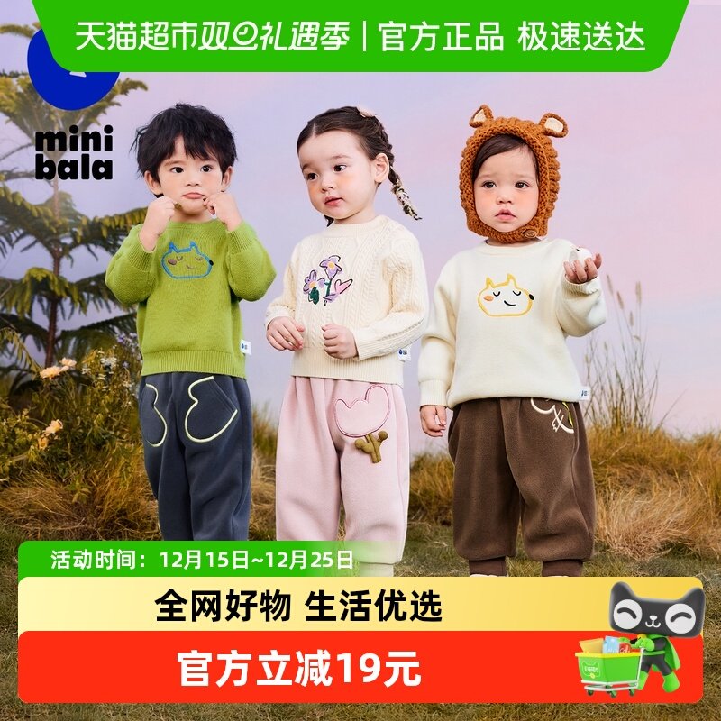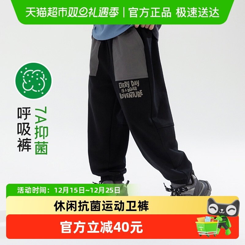童装/婴儿装/亲子装 ebaer儿童加绒运动抗菌长裤2024秋冬装款男童休闲针织裤童装裤子
